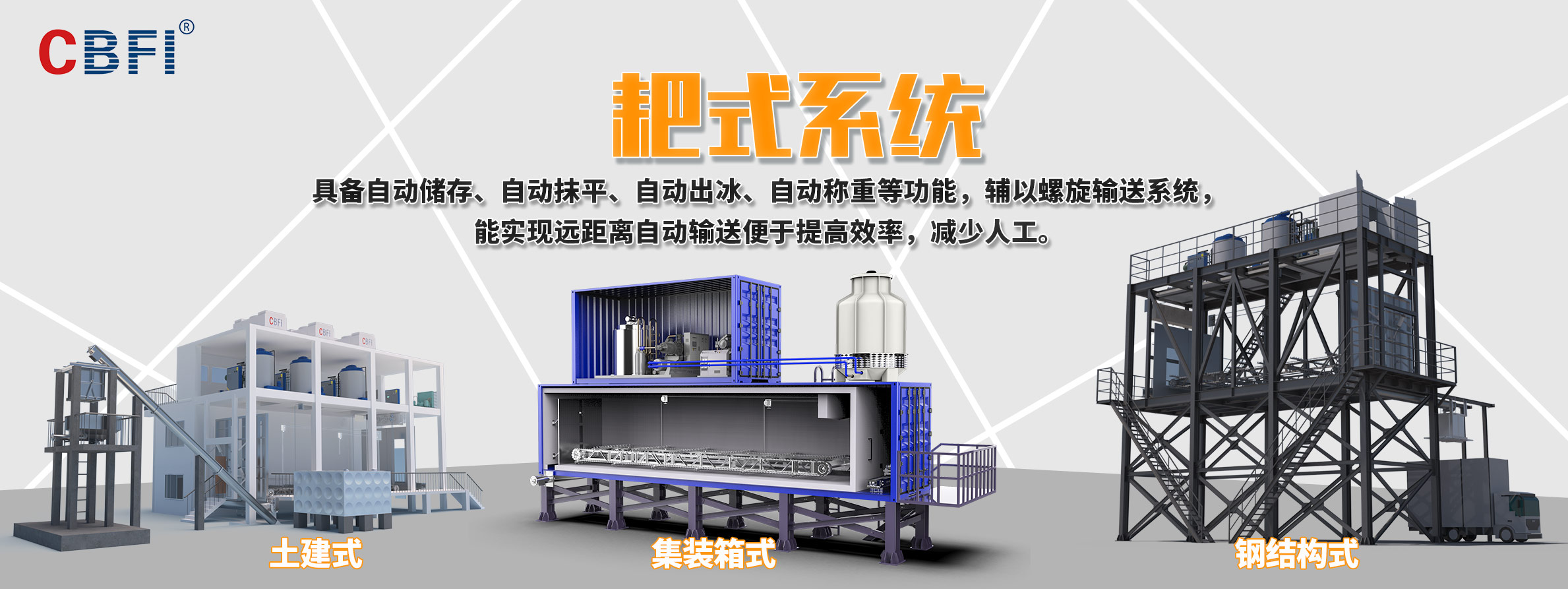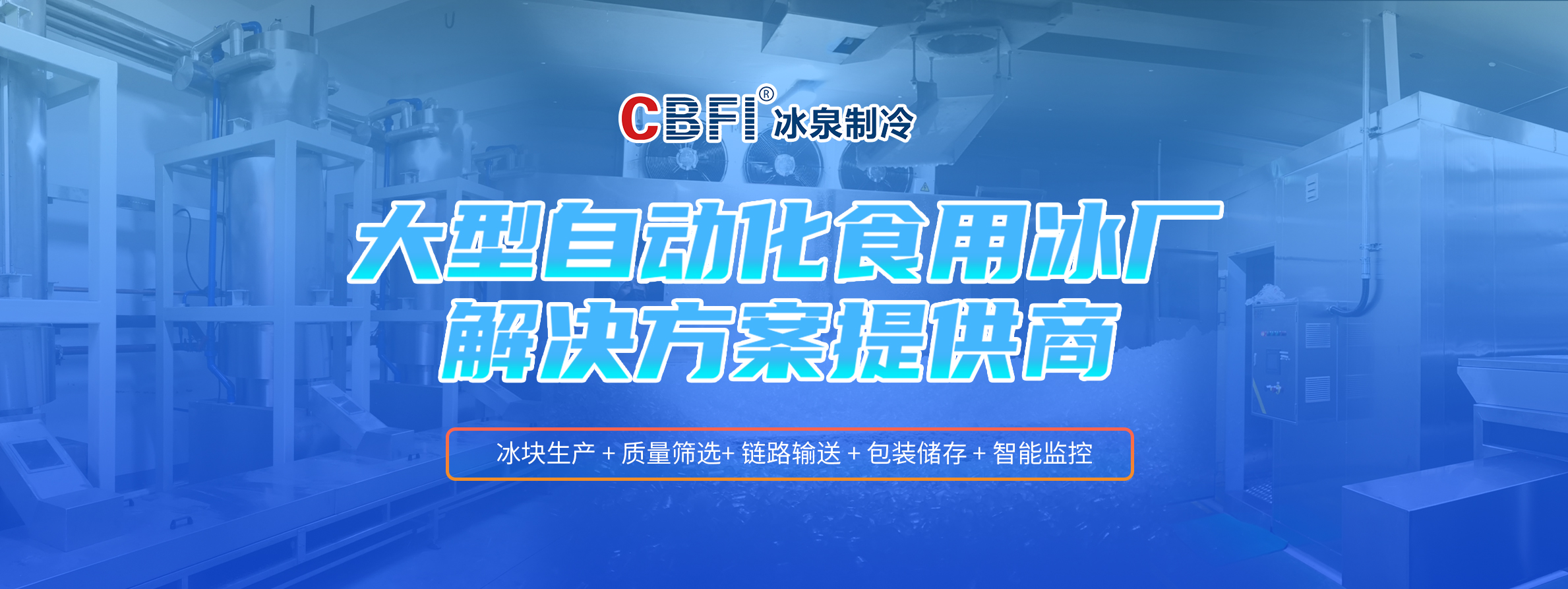 廣州冰泉制冷設備有限責任公司(商標CBFI),大型氟制冷制冰設備行業開拓者,是一家立足國內、面向全球,集大型食用制冰設備、大型工業制冰設備、高端商用制冰機、成套制冰系統的研發、設計、制造、銷售、售后服務于一體的創新創業型高新技術企業,是大型冰廠和冷庫工程解決方案服務商。